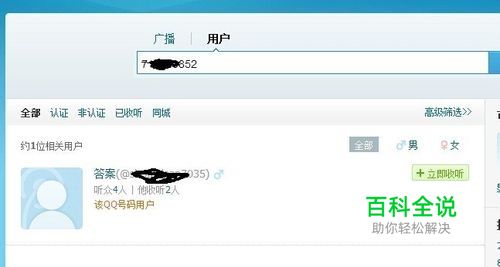 按回车键或者点搜索图标,会出现结果界面,如果存在此qq号的微博,就会被显示出来,有注明“该为qq号用户”;