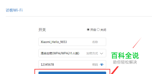 点击页面中的访客wifi网络设置选项,然后便可以开始相关的设置,由于默认访客wifi网络是处于关闭状态的,所以,我们得先打开开关按钮,使访客wifi网络处于开启状态。