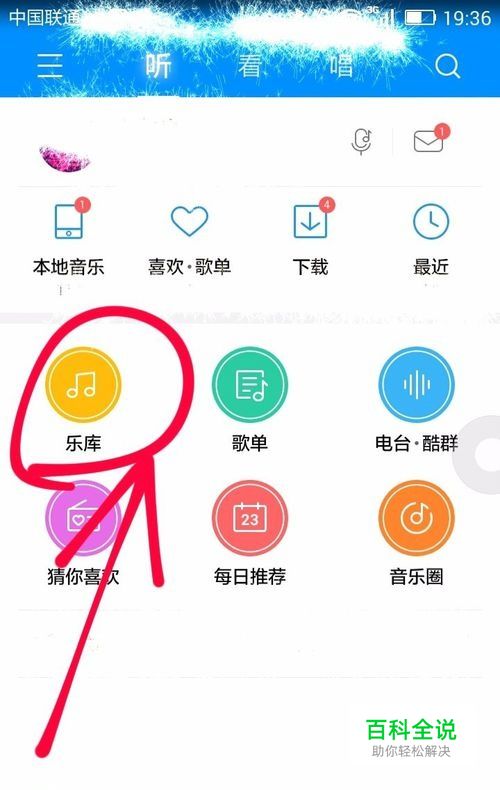 在打开的应用首页中,我们可以选择从乐库中搜索歌单;