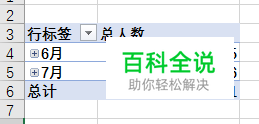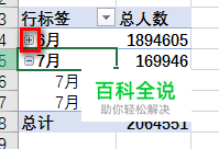 点击第一列单元格内的+号展开表格(也可以通过 数据透视表工具 》分析 》展开字段 实现)
