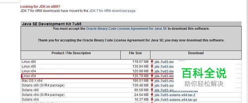然后根据自己的linux系统选择相应的版本,比如我的ubuntu是x64的,所以我选择jdk-7u65-linux-x64.tar.gz下载。