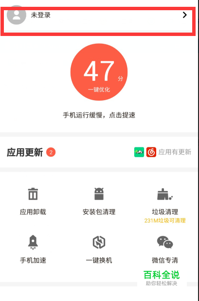 在管理选项的最上方,有一个【未登录】的按钮,点击一下这个功能