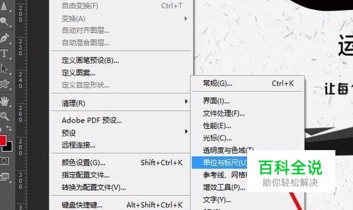 首先我们需要设置以下参考线的单位,一般是像素,像素和长度单位厘米、米是有区别的,点击 编辑---首选项---单位与标尺。