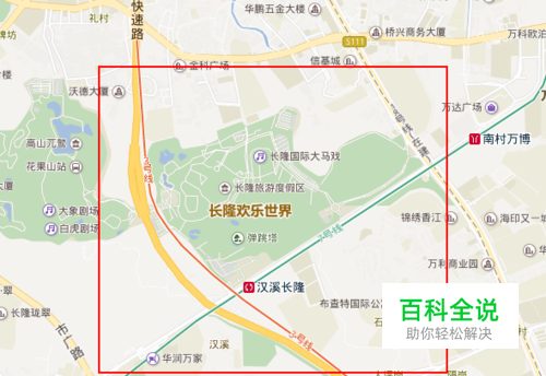 打开百度地图,然后在搜索栏上输入“长隆旅游度假区”,找到该地点。