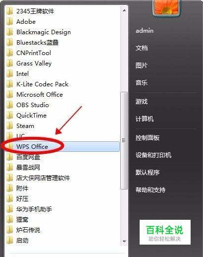 步骤一:找到开始栏中的WPS文件