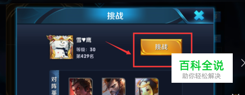 回到先前的挑战界面,点击挑战,这里我挑战的是一位429名的玩家