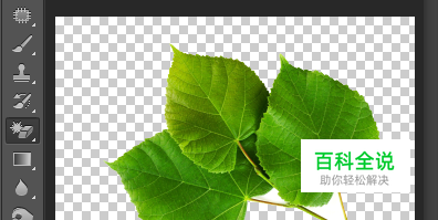 左边工具栏-魔术橡皮擦工具;点击白色背景,将白色的背景全部擦成透明,注意叶子与叶子的缝隙中也要先放大图片,将白色背景擦成透明。