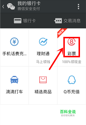 进入我的银行卡,可以看到一个新上线的活动,这个之前的版本中是看不到的。在世界杯期间,购买微信彩票中大奖,点击【彩票】进入活动。