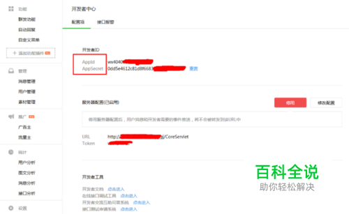 登录微信公众平台,点击左侧开发者中心,如图所示,记下AppId和AppSecret。