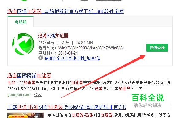 首先你在网络上搜索迅游加速器,这个加速器比较常用,我就用这个例子跟大家一起说了,如下图