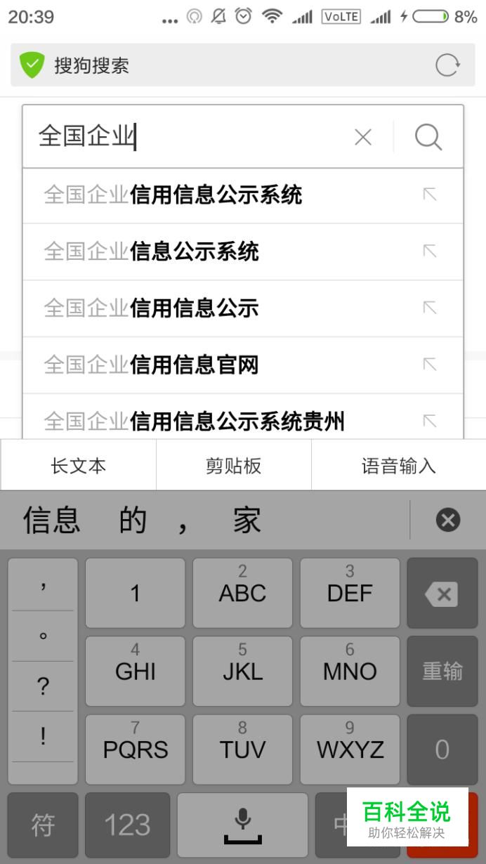 首先,我们进入搜狗搜索的页面,输入国家企业信息公示系统。
