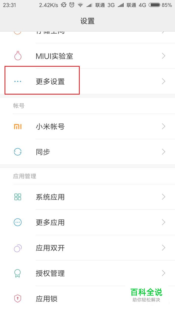 首先,打开MIUI系统中的设置应用,进入MIUI系统设置页面,点击“更多设置”选项。