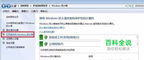 打开控制面板-系统与安全-Windows防火墙,点击左侧启动或关闭Windows防火墙