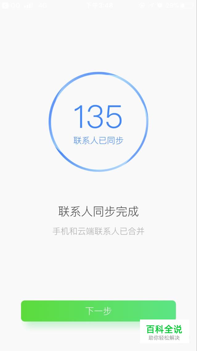 登录后会弹出一个同步提示,如果选择了就可以将你手机里的通讯录同步到网上了,如图所示。