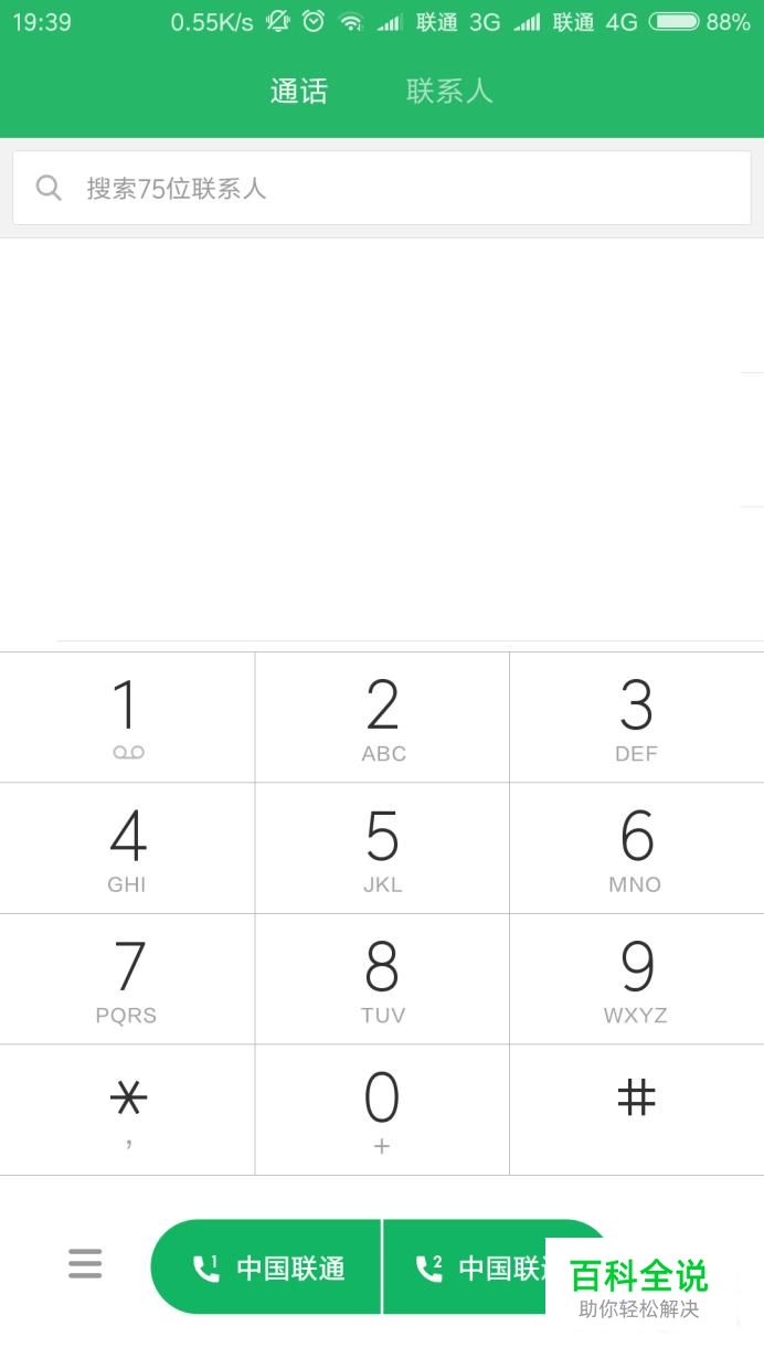 首先,打开MIUI系统中的电话应用主页面,在该页面中,长按菜单键。