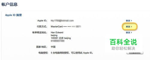 第二步:在账户信息页面,选择付款方式一行最后的“修改”。