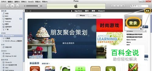 第一步:打开iTunes软件,点击左侧边栏里的STORE,进入商城的首页,点击右上角的登陆,输入自己的苹果ID(iTunes帐号)和密码,之后点击自己的ID。