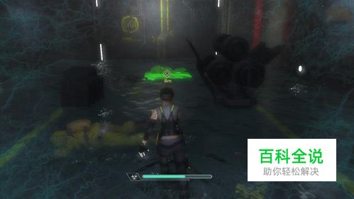 进来后的房间可以看到目标门被大铁箱挡住了,往铁箱里放浮桶,放三个之后回到水面吸口气,然后以最快速度进门一直想着目标点游泳,距离很长,上岸之后上电梯。