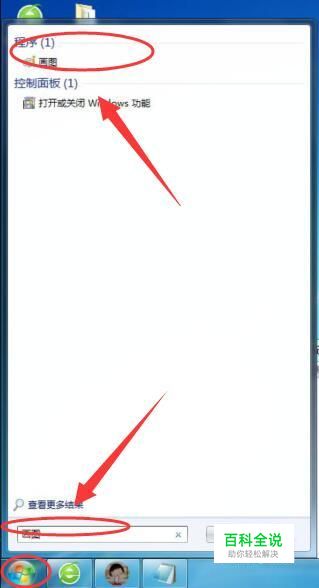打开画图工具 在电脑的左下角点击【开始】图标,在弹出的窗口中输入【画图】,并点击它,如下图所示: