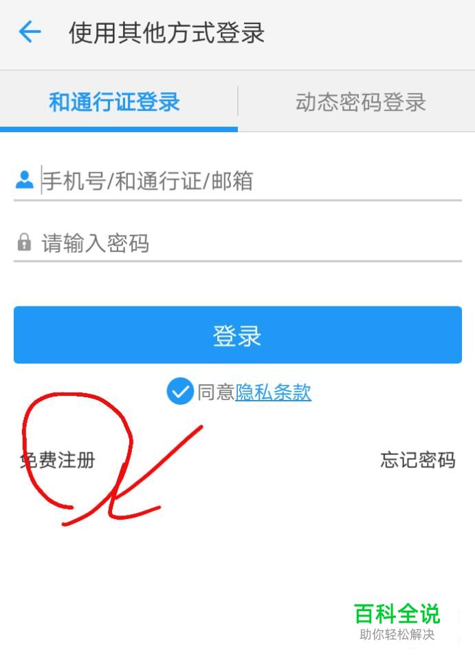 然后点击“和留言”,进入注册移动号,注册号后点击登录