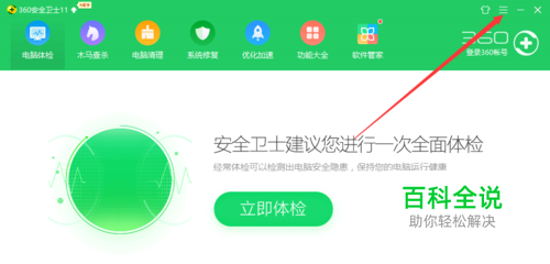 打开360安全卫士,点击右上角的菜单,点击设置