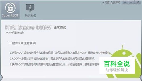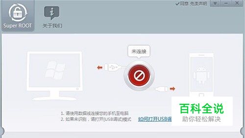 运行下载下来的ROOT软件,手机通过数据线与电脑连接,软件会自动识别手机