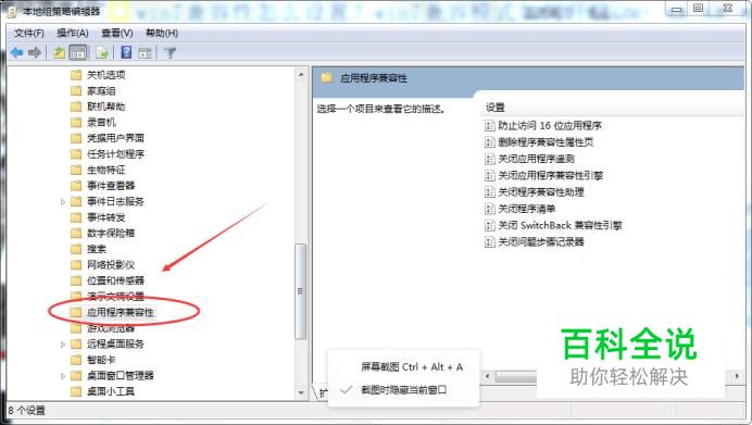 删除程序兼容性属性页 在右侧找到【删除程序兼容性属性页】,然后鼠标右击,选择【设置】,如下图所示: