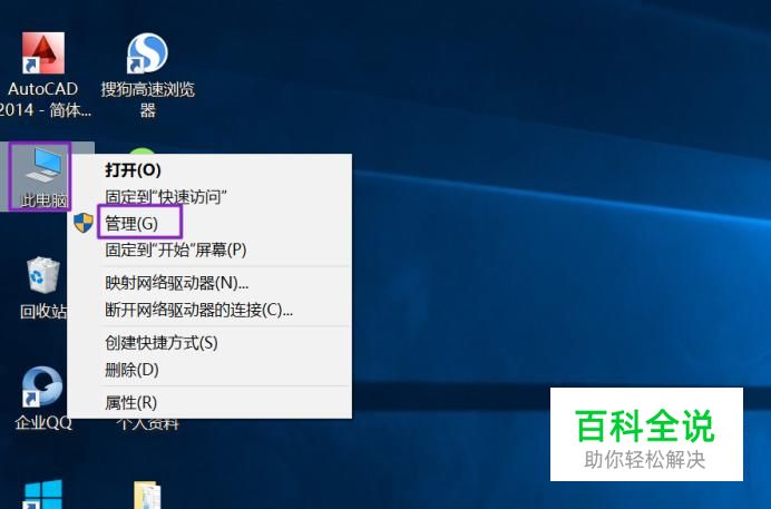 首先,我们右击桌面上的此电脑,弹出的界面,我们点击管理;