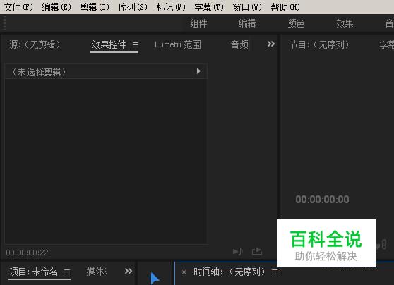 下面用PR软件来演示操作方法。我们启动PR软件,新建项目。进入到软件的操作界面中。