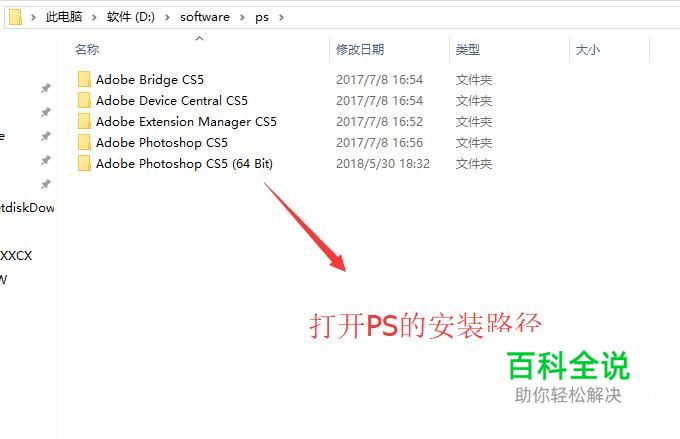 首先要找到PS的安装目录,我这里安装时是自定义的目录,如果你是默认安装的话应该在C盘的Program Files下面
