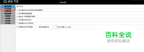 第三步,进入收银软件进行【参数设置】,找到参数设置就会看到【打印设置】