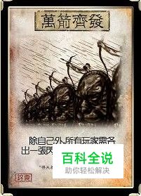 【万箭齐发】:出牌阶段,对除你以外的所有角色使用。按逆时针顺序结算,每名角色依次打出一张【闪】,否则该角色受到一点伤害。 这个牌算上拓展包,也只有一张,没有什么太多的注意事项,使用的时候只需要注意下曹操、郭嘉、张角、荀彧、小乔、杨修等武将。如果有这些武将在场,是否使用需要多思量。 如果己方武将都残血了,也要多斟酌下再使用。反贼建议一般情况下,还是不要收队友的,这也是本人一直在三国杀online之中遵循的原则,但更不要让敌方武将收,3张奖励牌可能会影响整体局势,实在不行可以考虑利用各种AOE,【杀】和【决斗】等收自己的队友。