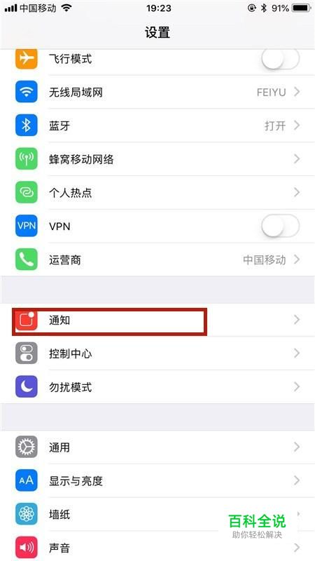 然后点击通知,如下图所示。