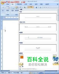 第1步,打开Word2007文档窗口,切换到“插入”功能区。在“页眉和页脚”分组中单击“页眉”或“页脚”按钮(本例单击“页眉”按钮),并在打开的页眉面板中选择“编辑页眉”命令,如图所示。