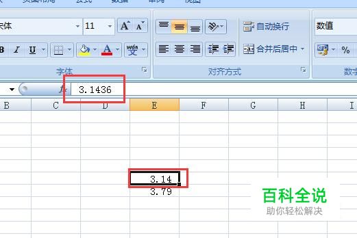 Excel中第一个数3.1436,如图自动四舍五入为3.14