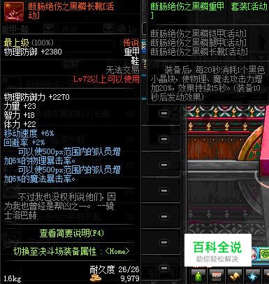 断肠绝伤传说套装也是比较适合圣武枪魂的,其效果和瘟疫之源差不多,能够增加所有属性强化,还能够减少伤害。