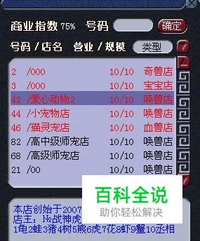 为什么说宠店赚钱那?因为有需求才有市场,全区那么多人,每个人都需要做师门,所以宠物店每天的需求量是最大的,但并不是所有人开店都赚的,因为开店也要技巧的,首先要有个猎号,这样效率才有保障,其次要想是店铺利益最大化,那就是去新区、火区(如2008 生日快乐),新区可以叫你抢占靠排的的好位置和好号码,又可以为名店创造更有力的条件,火区可以保证你的客源,不必担心东西卖不出去。