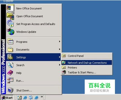 我们以Windows2000 为例,单击“开始”→“设置”→“拨号网络”