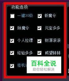 功能选项: 1、勾选一键30级,自动完成。 2、勾选相应的功能,自动完成指定任务。