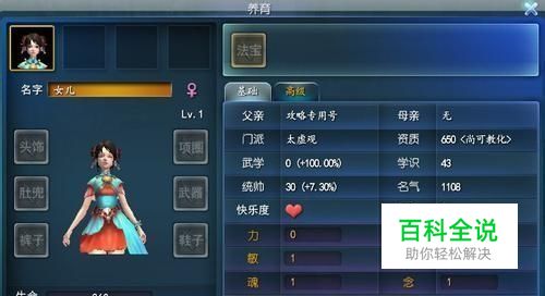 在给闺女穿装备之前,先取一个漂亮的乳名,顺便注意了一下女儿的门派。