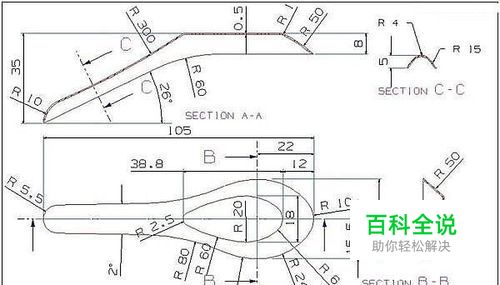 按下图一将坐标轴移动到所示位置,并与羹匙把斜面对齐。按下图二绘制半径为4的圆。按下图三绘制半径为15的圆弧。修剪多余部分,得到下图四所示的截面C。删除多余部分及注释。羹匙的三维线框图绘制完成,结果如下图五所示。