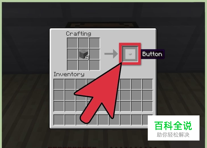 获得按钮。收集石头,并用石头制作按钮,方法是将一个石头放在右边,另一个放在上端。你需要制作出至少两个按钮。