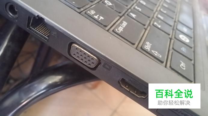 首先打开笔记本,通过视频数据线(图中是VGA线),连接笔记本和外接显示器。
