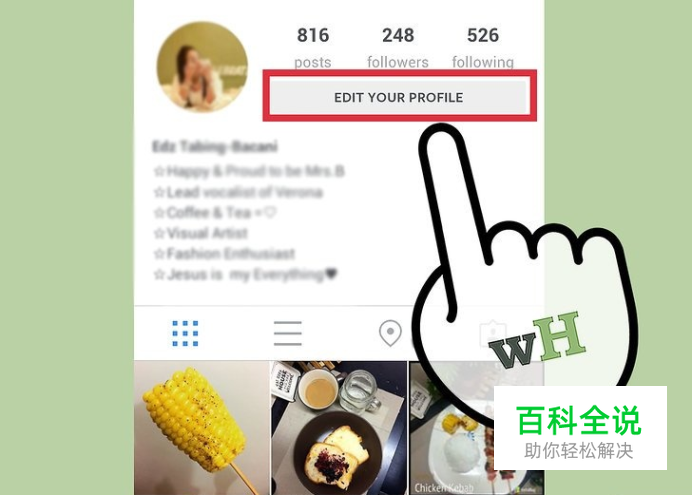 在屏幕底端的浏览菜单中,点击最右边的图标编辑你的账户资料。然后轻触位于账户统计资料下方的“编辑用户资料(Edit Your Profile)”按钮。