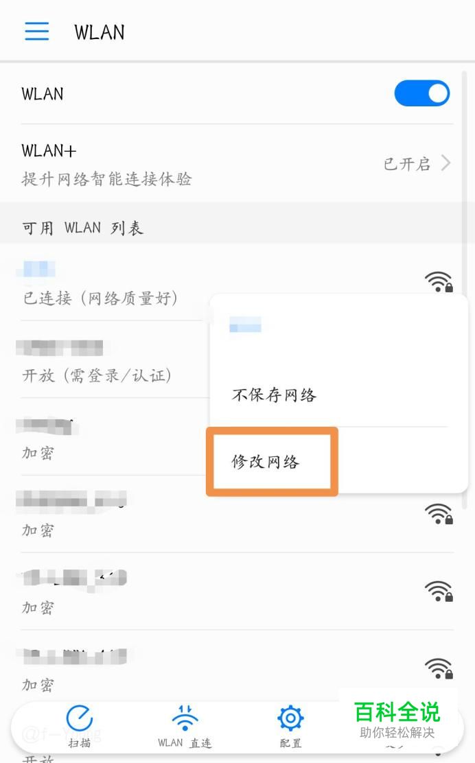 首先打开手机设置,在WIFI中点击自己连接的WIFI。点击修改网络。