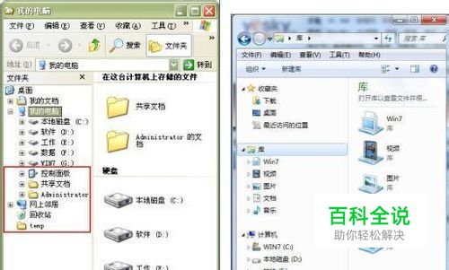 现在回到Win7系统“计算机”下,左侧列表里面,桌面、控制面板、回收站都出现了。另外,原本相对独立的库、个人文件夹、计算机、网络等都归属到了“桌面”下,看起来是不是很眼熟呢?