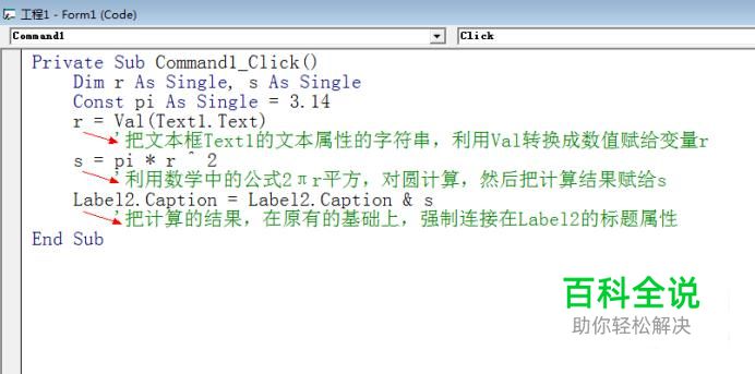 接下来我们开始编写计算按钮的单击事件。首先先定义两个变量r和s,r是半径,s是面积。