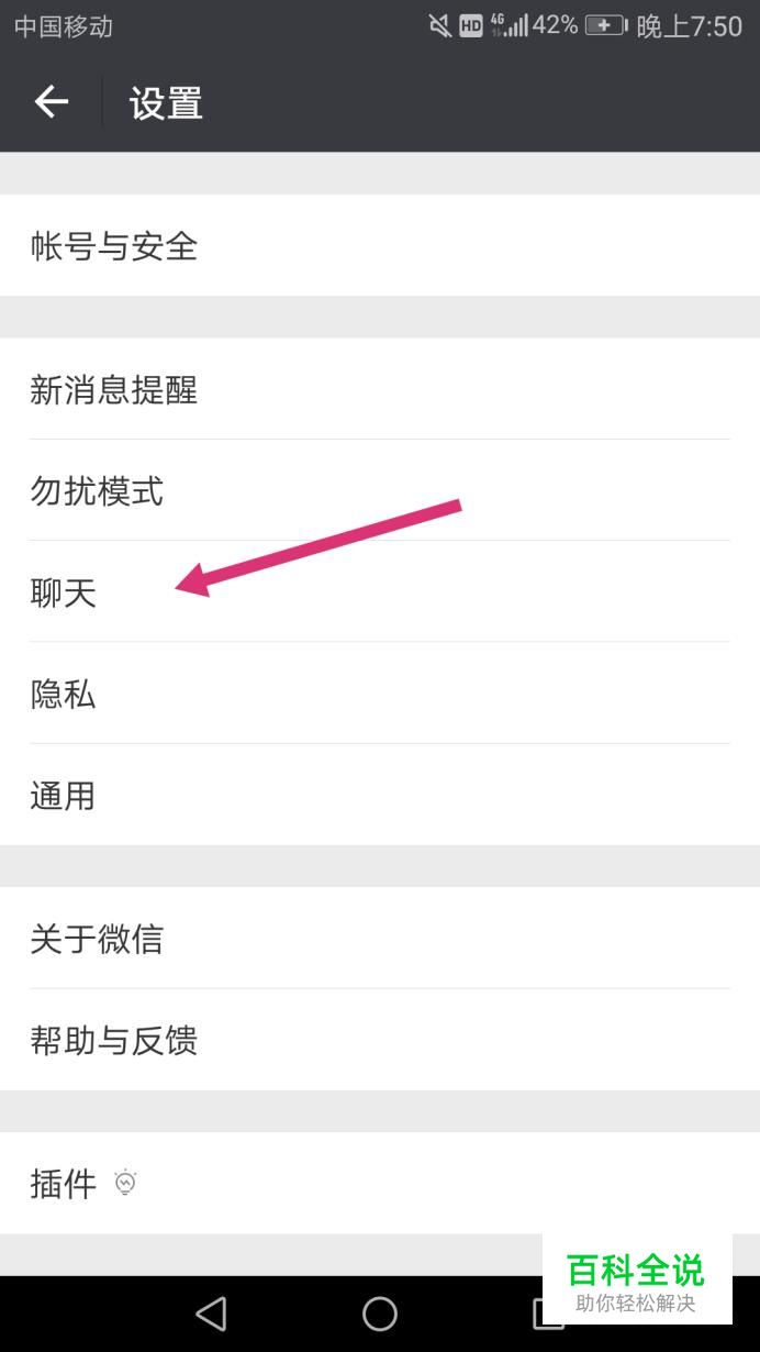 打开设置后,找到“聊天”选项,将其打开,如下图。