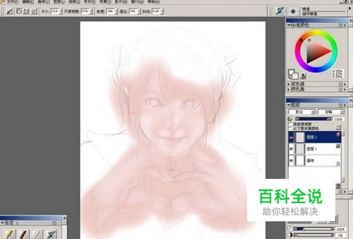 新建图层,属性为胶合。用喷枪画出人物皮肤的基本色