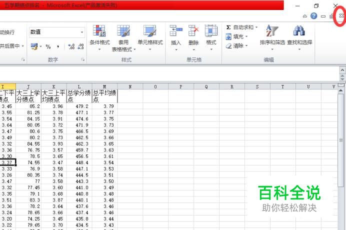 现在,需要在任意表格中点击小窗口中的【X】,将其中一个excel表格关掉,如图所示。